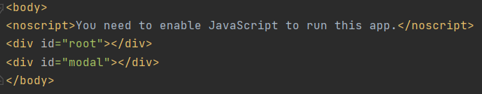 먼저 public/index.html에 모달이 뜰 영역을 정의해준다.