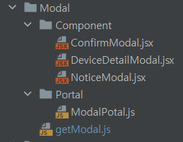 프로젝트의 모달관련 디렉토리 구조를 위와 같이 잡아놓았다.