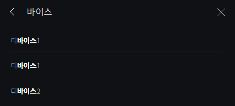 const ArrayData = itemList.map((item, index) => { return ( <li key={index}> <button type="button" className="btn btn-searching" onClick={() => {}} }> <span>{item.name.split(searchValue)[0]}<em>{searchValue}</em>{item.name.split(searchValue)[1]}</span> </button> </li> ) })맵 함수를 이용해 itemList를 컴포넌트화 해준다.